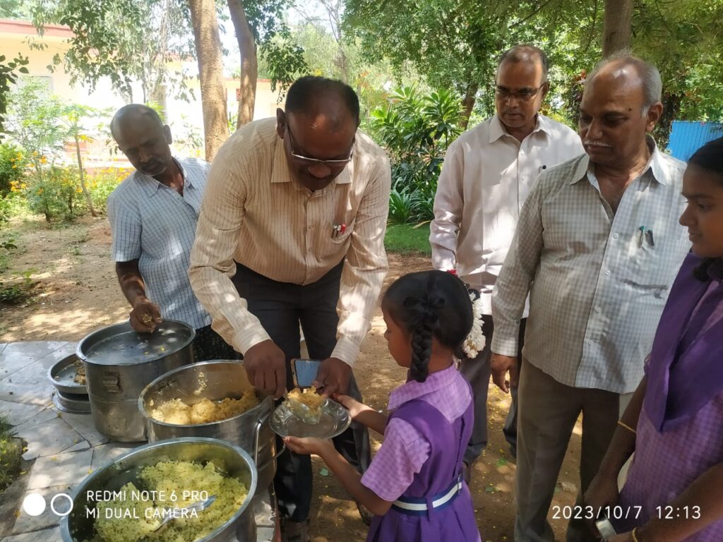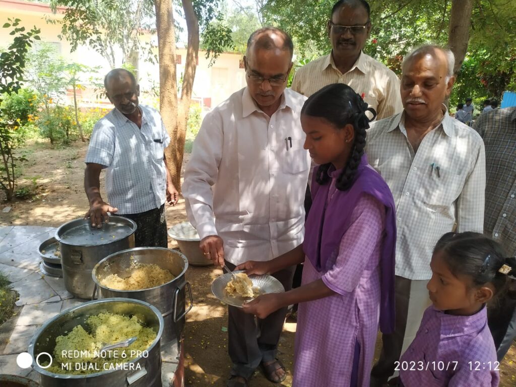 మధ్యాహ్నం భోజన సమయంలో స్వయంగా విద్యార్థులకు భోజనం వడ్డిస్తున్న తిరుపతి డివిజన్ ఉప విద్యాధికారి ఎం.ఆనందరెడ్డి