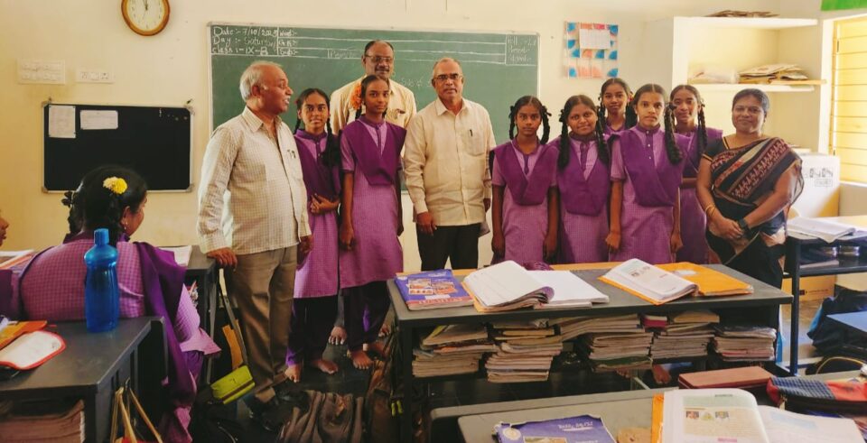 జానం న్యూస్, పీలేరు, అక్టోబర్ 7: శనివారం స్థానిక జడ్పీ ఉన్నత పాఠశాల కోటపల్లి (బాలికలు) పాఠశాలను తిరుపతి డివిజన్ ఉప విద్యాధికారి ఎం.ఆనంద రెడ్డి ఆకస్మిక తనిఖీ చేశారు.అటెండెన్స్ యాప్ ను పరిశీలించారు. ప్రతిరోజు ఉపాధ్యాయులు ఇన్ టైంలో పాఠశాలకు వచ్చి అటెండెన్స్ యాప్ లో నమోదు చేసుకోవాలని అన్నారు. ఉపాధ్యాయులు ఒక నెలలో మూడు రోజులకు మించి ఉపాధ్యాయులు ఇన్ టైంలో రాకపోయినా ఎడల అది సెలవు గా పరిగణిస్తామని అన్నారు. నోటుబుక్కులు, వర్క్ బుక్కులను ఉపాధ్యాయులు కరెక్షన్ చేస్తున్నారా లేదా అని తనిఖీ చేశారు. బైజుస్ ట్యాబులను ప్రతిరోజు ఉపాధ్యాయులు పాఠశాలకు తీసుకురావాలని అందుకు మినహాయింపు లేదని అన్నారు. ఇటీవల జరిగిన ఎఫ్.ఏ-2 పరీక్షలో టాపర్స్ అయినా 9వ తరగతి విద్యార్థినిలు యోషిత, రుషిత, పల్లవి లతో సెల్ఫీ తీసుకున్నారు.