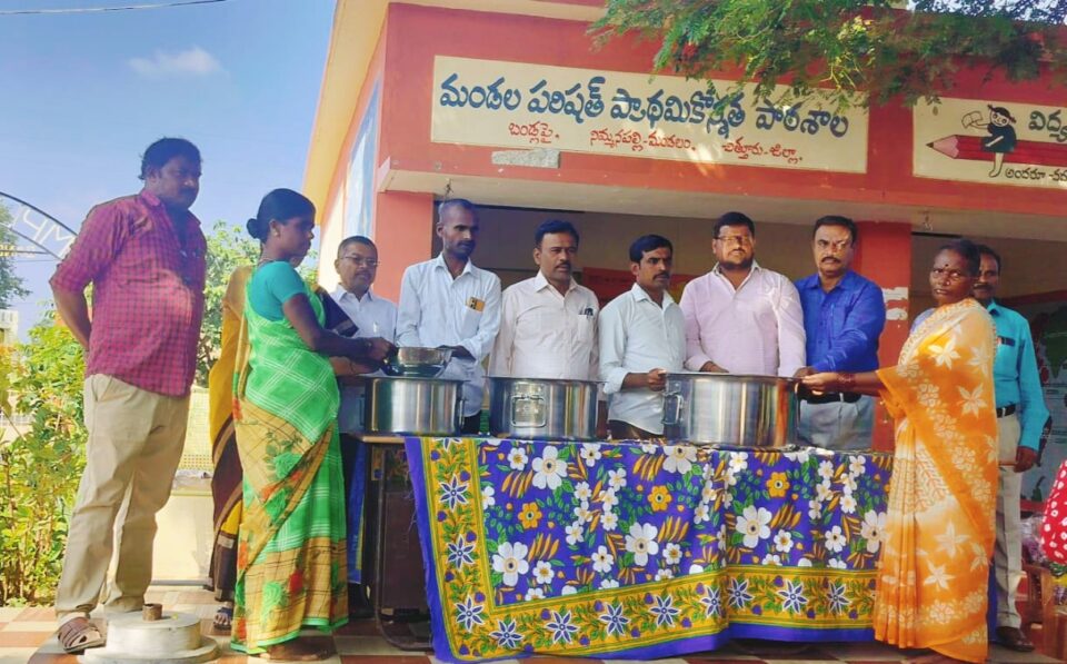 జానం న్యూస్, నిమ్మనపల్లి, నవంబర్ 18: అన్నమయ్య జిల్లా, నిమ్మనపల్లి మండలంలోని బండ్లపై, మండల పరిషత్ ప్రాథమికోన్నత పాఠశాల నందు శనివారం ప్రభుత్వం అమలు చేస్తున్న జగనన్న గోరుముద్ద పథకంలో భాగంగా ప్రభుత్వం సరఫరా చేసిన వంట పాత్రలను పాఠశాల వంట సిబ్బందికి అందజేయడం జరిగింది.పై కార్యక్రమానికి ముఖ్య అతిథులుగా పాల్గొన్న స్థానిక సర్పంచ్ చంద్రమోహన్, ఉప సర్పంచ్ నాగార్జున చేతుల మీదుగా వంట పాత్రలను పాఠశాల వంట సిబ్బందికి అందజేశారు. ఈ సందర్భంగా వారు మాట్లాడుతూ విద్యార్థులకు జగనన్న గోరుముద్ద పేద విద్యార్థులకు వరం లాంటిదని విద్యార్థులకు మంచి పౌష్టికాహారం అందిస్తున్నారని అన్నారు.