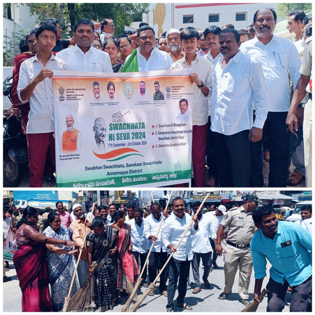 పీలేరు సెప్టెంబర్ 17:సెప్టెంబర్ 17వ తేదీ నుండి అక్టోబర్ రెండవ తేదీ వరకు దేశవ్యాప్తంగా కేంద్ర మరియు రాష్ట్ర ప్రభుత్వాలు ‘స్వచ్ఛత హి సేవ’ కార్యక్రమం నిర్వహిస్తారు. అందులో భాగంగా పీలేరు పట్టణంలో మంగళవారం ఈఓ గురు మోహన్ ఆధ్వర్యంలో స్థానిక పంచాయతీ కార్యాలయం నుండి పట్టణంలోని నాలుగు రోడ్ల కూడలి వరకు భారీ ర్యాలీ జరిగింది. అనంతరం నాలుగు రోడ్ల కూడలిలో మానవహారం ఏర్పాటు చేశారు.పై ర్యాలీలో ఎన్.సి.సి, విద్యార్థులు, మండల ఆధికారులు, సామాజిక సంస్థలు, వెలుగు సభ్యులు, తెలుగుదేశం పార్టీ నాయకులు ప్రజా ప్రతినిధులు చేత ఈవో గురు మోహన్ ‘స్వచ్ఛత హి సేవ’ లక్ష్యాలను సాధిస్తాం అని ప్రతిజ్ఞ చేపించారు.