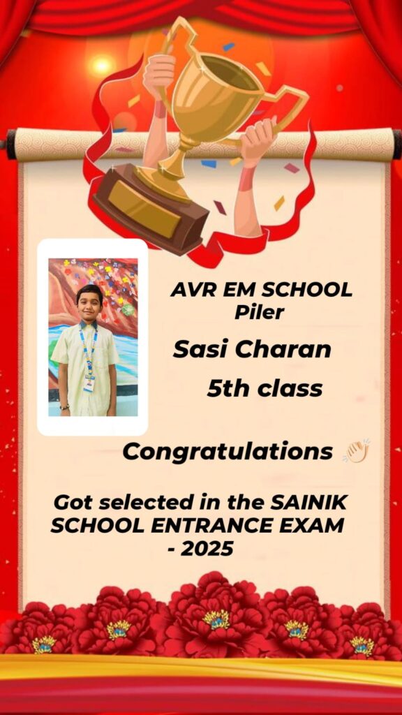 పీలేరు పట్టణంలో ఉన్న ఏ.వి.ఆర్ ఇంగ్లీష్ మీడియం స్కూల్ విద్యార్థులు 2025 సంవత్సరానికి నిర్వహించిన ప్రతిష్టాత్మక పోటీలలో remarkable performance కనబరిచి పాఠశాలకు గొప్ప గౌరవం తీసుకొచ్చారు. Their dedication, hard work and commitment have brought pride not only to the school but also to the entire town.