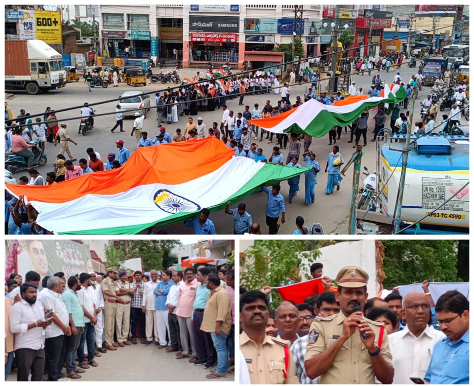 అనంతరం అతిపెద్ద పొడవు గల జాతీయ జెండాతో విద్యార్థులు “హర్ ఘర్ కా తిరంగా” ర్యాలీ జరిపారు. పై ఊరేగింపు పంచాయితీ కార్యాలయం నుండి ఆర్టీసీ బస్టాండు మీదుగా స్థానిక పట్టణంలోనే నాలుగు రోడ్ల కూడలి చేరి అక్కడ మానవహారం వేశారు. అనంతరం ర్యాలీ తిరిగి అంబేద్కర్ విగ్రహం వరకు కొనసాగి అక్కడ ముగిసింది.